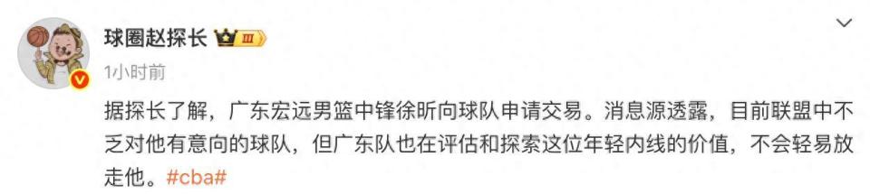 广东宏远男篮年轻中锋徐昕近日向俱乐部提出交易申请,这一消息引发了篮球界的广泛关注。据可靠消息源透露,目前已有数支CBA球队对这位潜力内线表达了兴趣,但广东队仍在评估其市场价值,尚未做出最终决定。这一情况发生在徐昕与球队的A1类合同即将到期的关键节点,使得续约谈判变得更加复杂。
